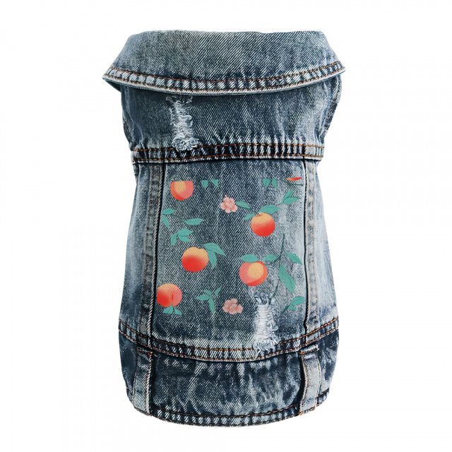 Peaches Kawaii Dog Denim Jacket is exactly what your pet needs. Soft denim cotton blend material keeps your dogs feeling light and comfortable. Button closure design, easy to put on and take off. You will realize that your pet is so fashionable when you take them out for a walk.